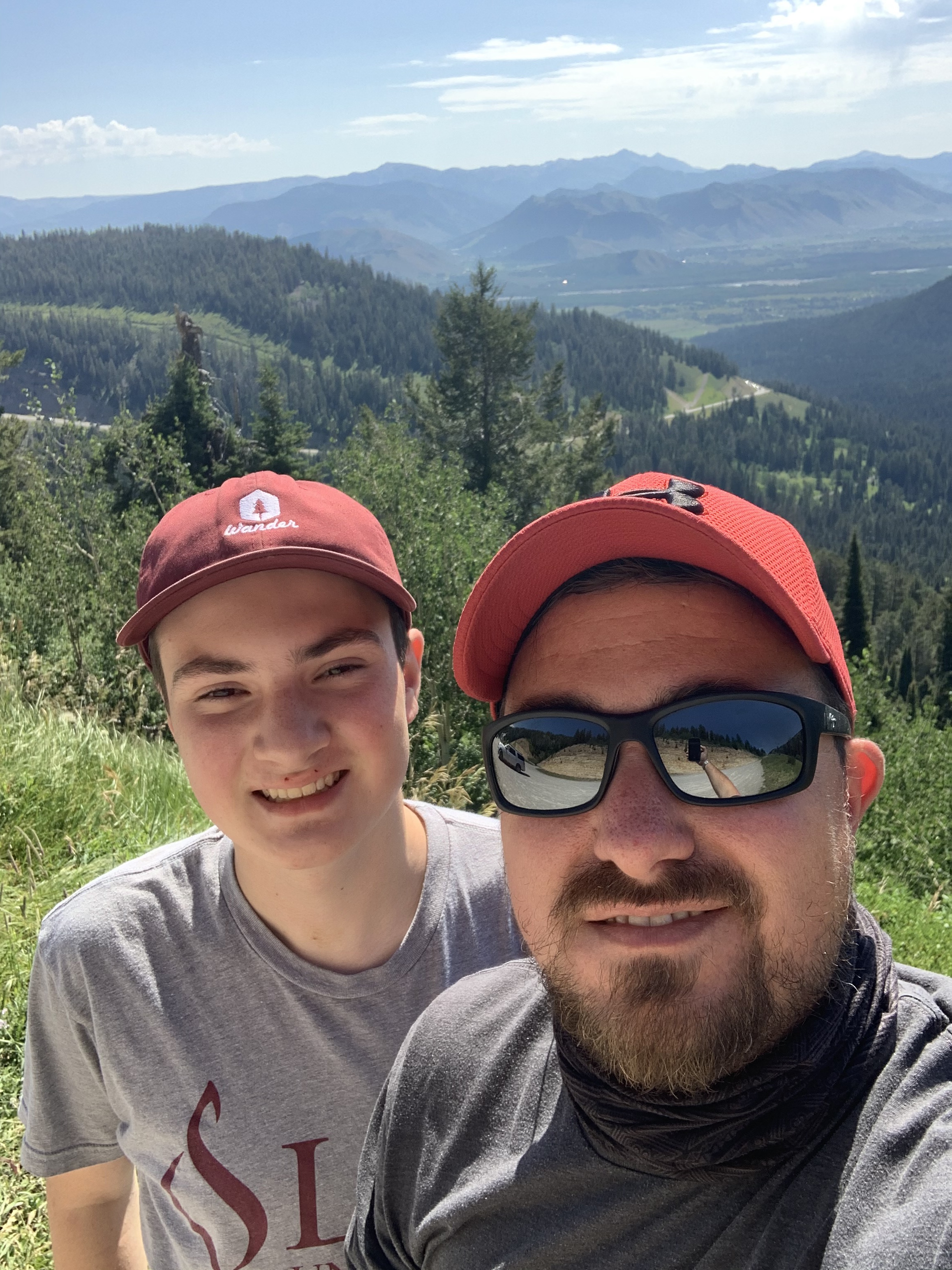 Grand Targhee Ski Lodge is only about 20 minutes from where we are staying, so we took a ride up there. We missed the ski lift; it stopped running at 4:30 PM. A beautiful overlook on the way back down to Driggs provided amazing views, a great climbing tree, and privacy. Kevin asked me if I would come back up there with him tomorrow to watch the sunrise. Of course, I said, “Yes!”