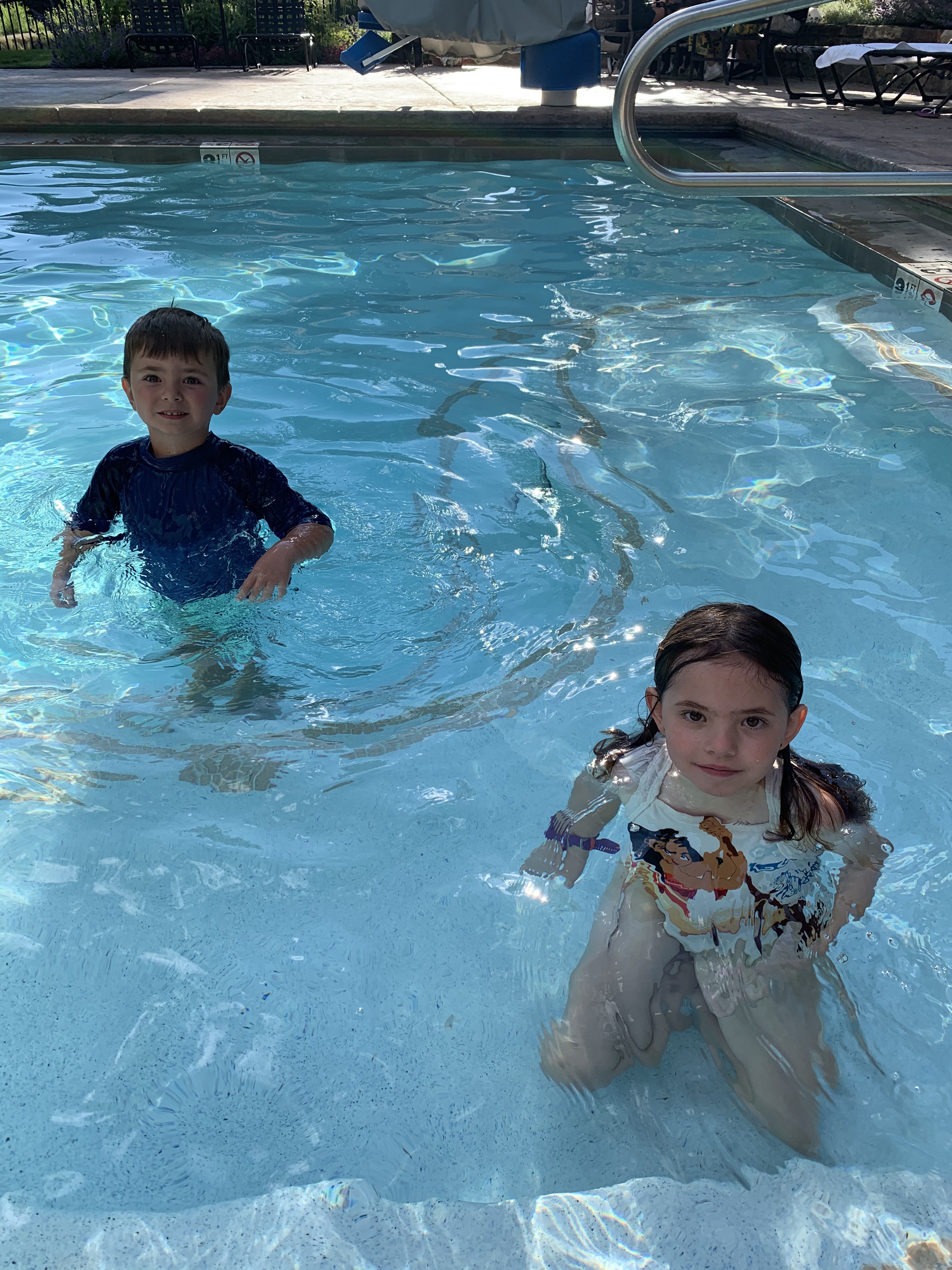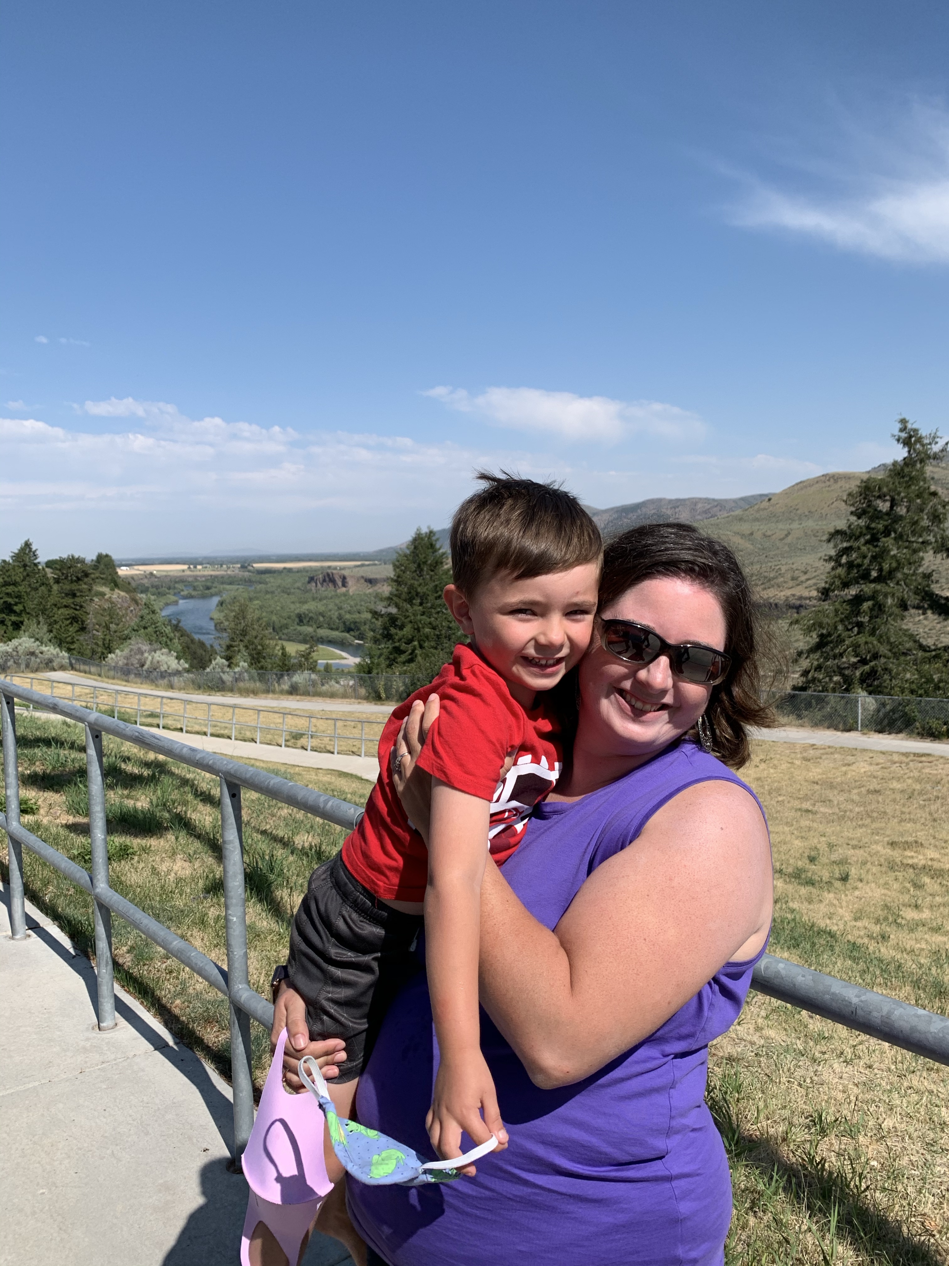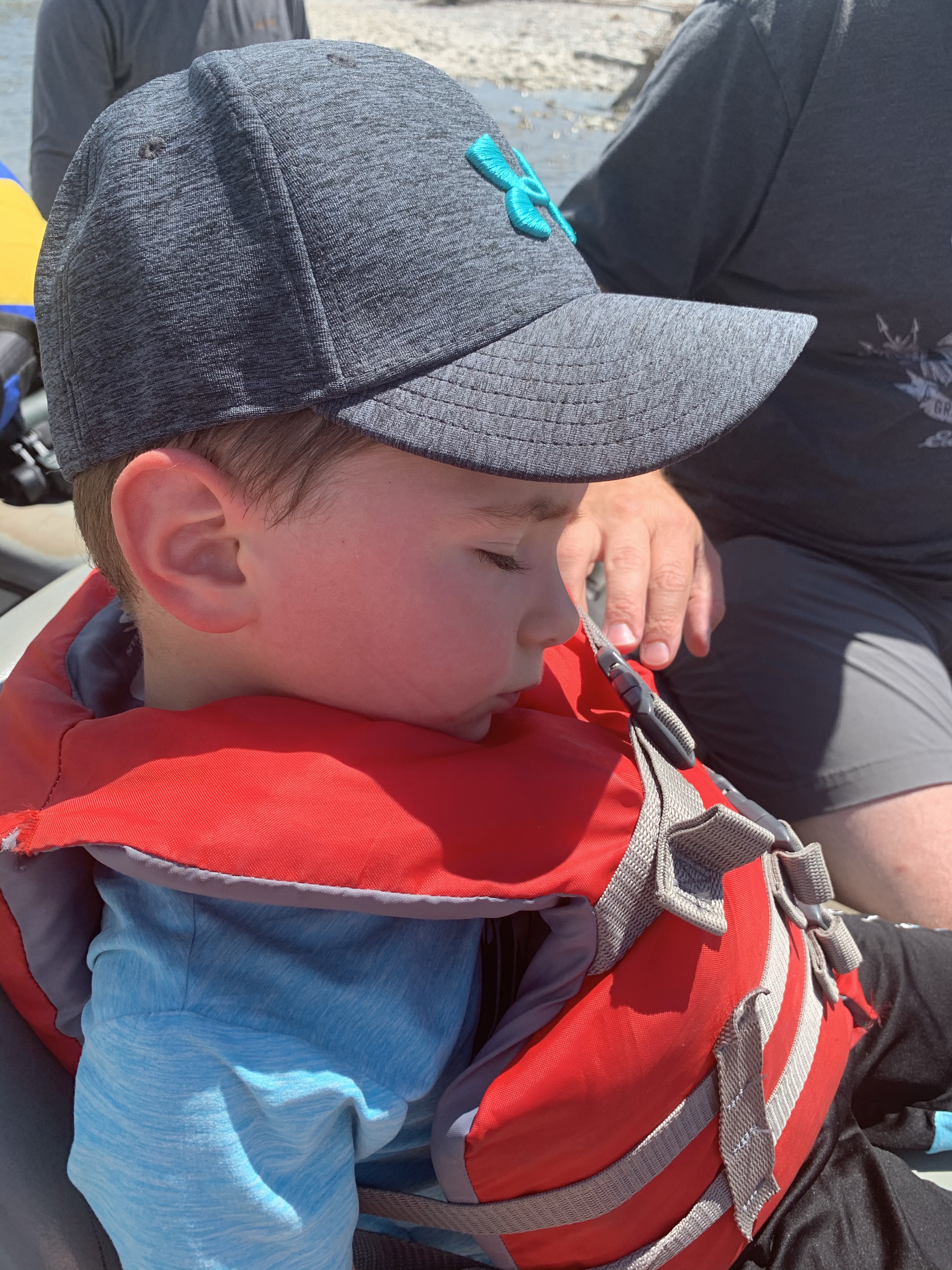 The total trip was 14 miles and took us three hours. I reapplied sunscreen constantly and no-one got terribly burned. Mama win! It’s supposed to be easier to get a sunburn here. The elevation is 6,000 ft above sea level. (At home, our elevation is 1,400 ft.) Edwin and Mont were able to get out of the raft and hold on for a bit during the end of the ride. The water was so cold! Kevin and I held Morgan and Lillie over the edge so that they could dip their feet in the water, too.