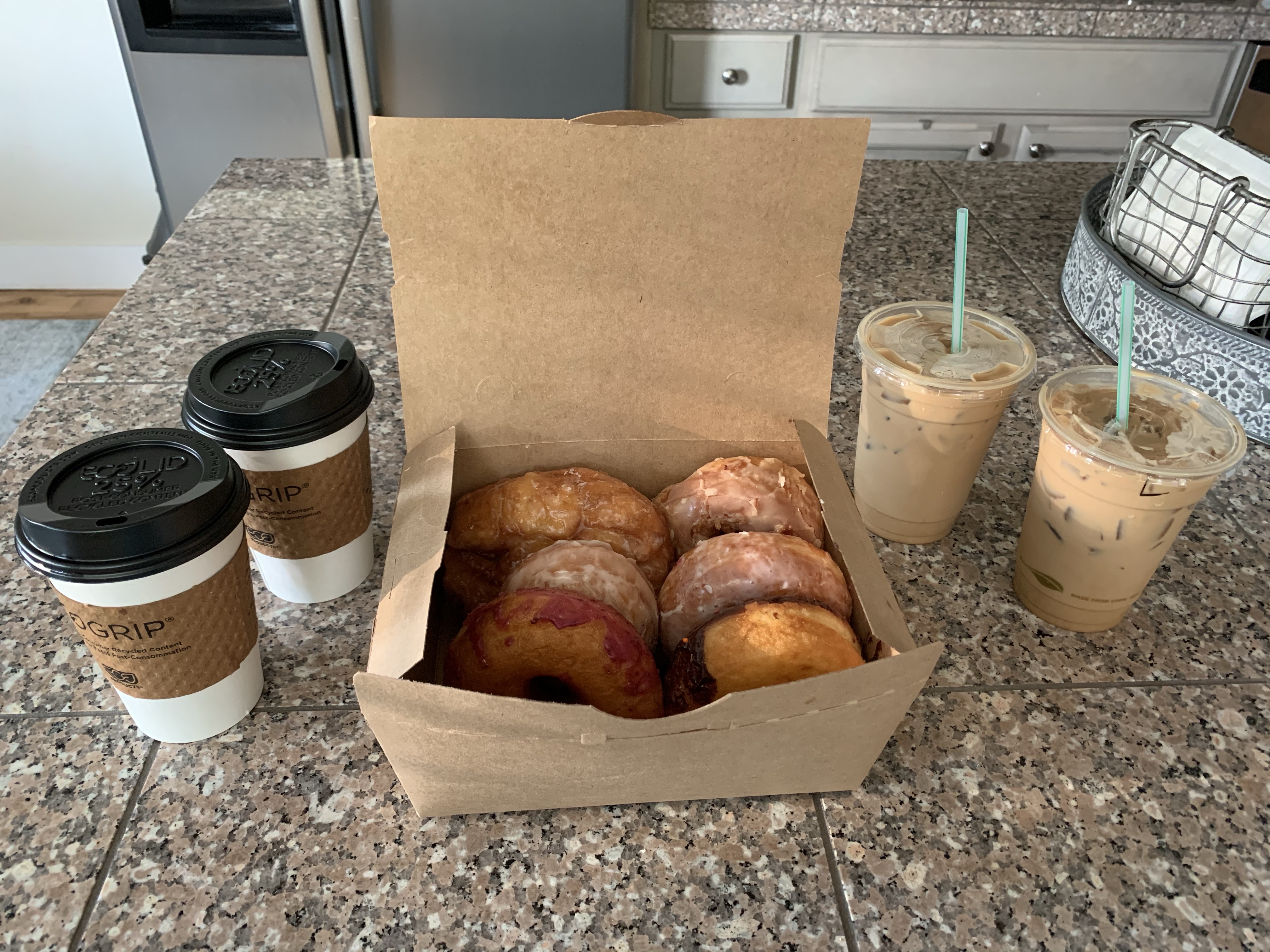 This morning I woke up early to go and get some of the home-made donuts from Yeti Post. (See yesterday’s blog for more information.) I went to the take-out window, donned my mask, and ordered some delicious breakfast fare to take back to my crew.