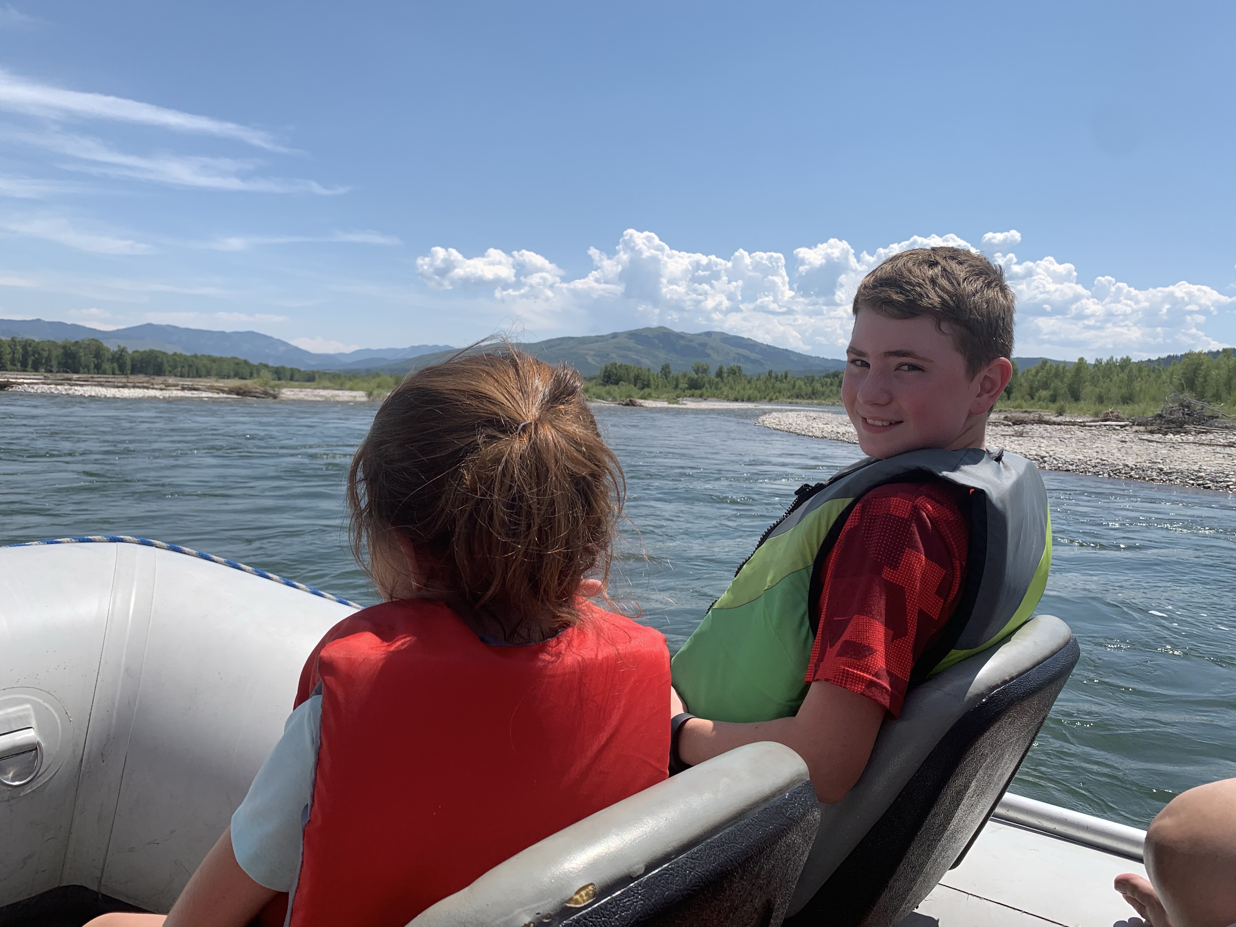 We had reservations for a private rafting trip with Teton Scenic Float Tours. We drove less than an hour to the boat ramp where we met up with Mark, our guide and the owner of the company. This was a great option for our family; they are the only company that will take children under six years old down the Snake River. He designed the seats on the boat to accommodate families with younger kids.