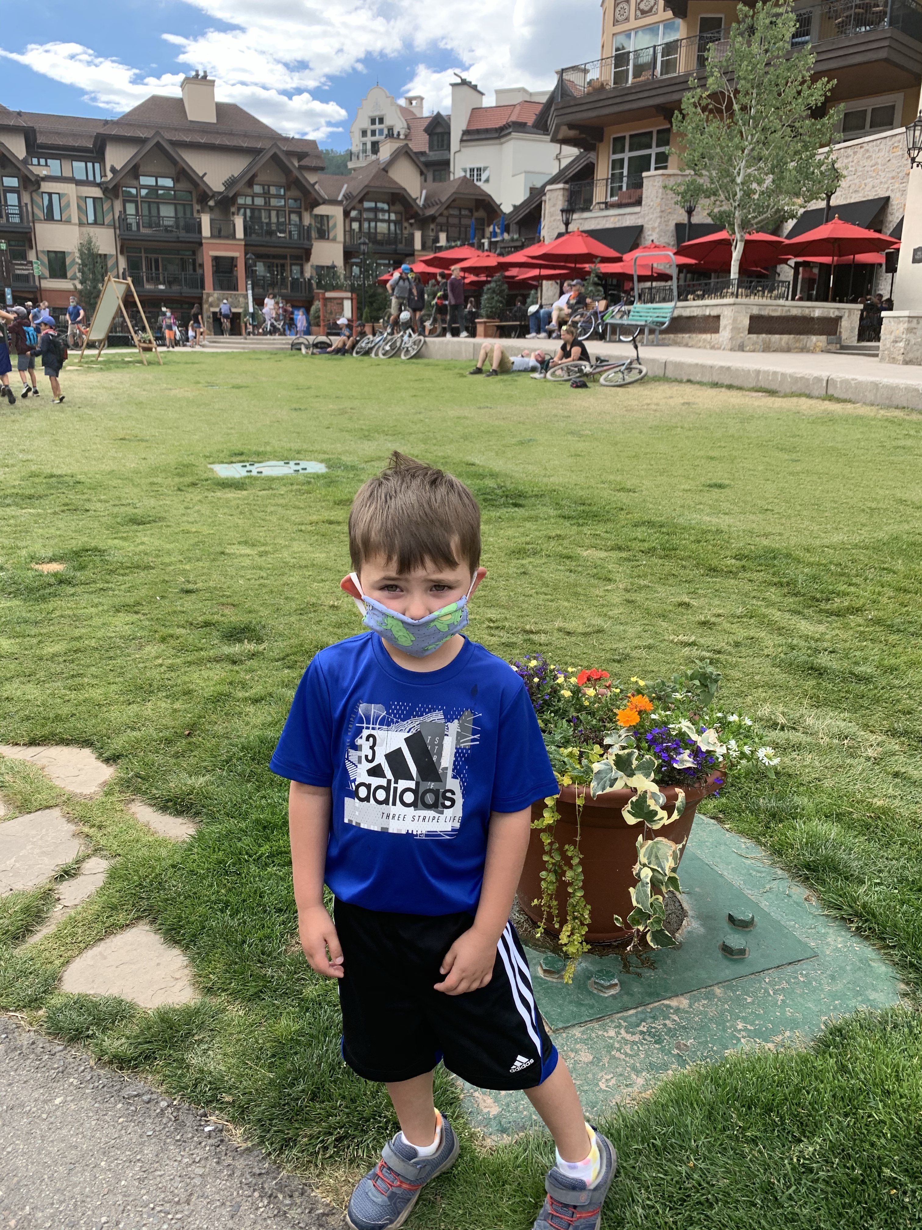They had a day-pass for a gondola ride to the top of a large mountain. During the winter, it’s a ski slope. In the summer, bicyclists got dropped off near the top and rode the winding trail down. There were lots of families here, but we just felt like no one was friendly here! The people that worked at the resort were nice enough, but none of the guests interacted at all. I didn’t feel like it was COVID related, either. Other places that we have gone on this trip, we have always found someone that we could interact with…