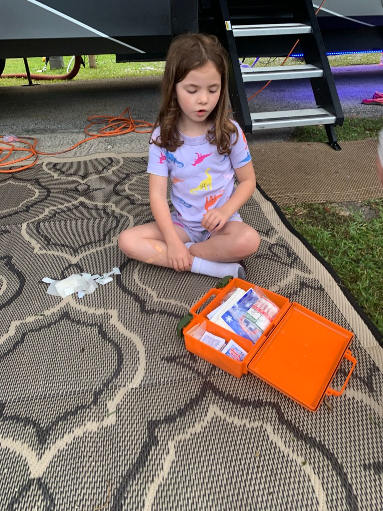 My daughter. Our princess. She wants to fix everything and make it better. Lillie found the first aid kit on our trip last week. She doctored bug bites, a bee sting, and nearly-invisible cuts. Tonight, Morgan’s heart was broken and she wanted to fix that too. I felt her heart deeply tonight, as well.