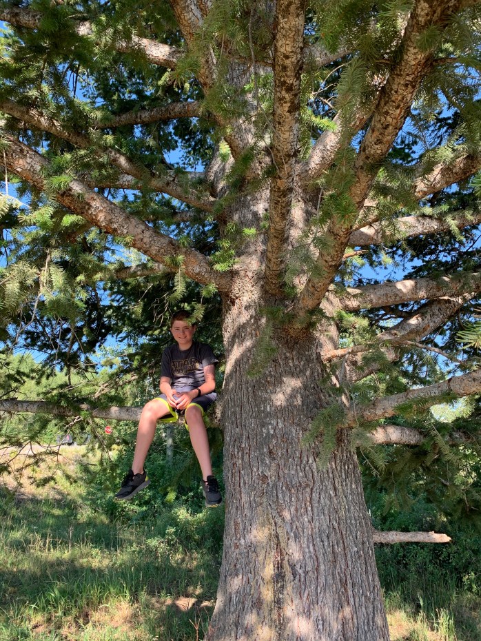 Grand Targhee Ski Lodge is only about 20 minutes from where we are staying, so we took a ride up there. We missed the ski lift; it stopped running at 4:30 PM. A beautiful overlook on the way back down to Driggs provided amazing views, a great climbing tree, and privacy. Kevin asked me if I would come back up there with him tomorrow to watch the sunrise. Of course, I said, “Yes!”