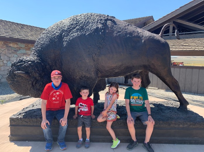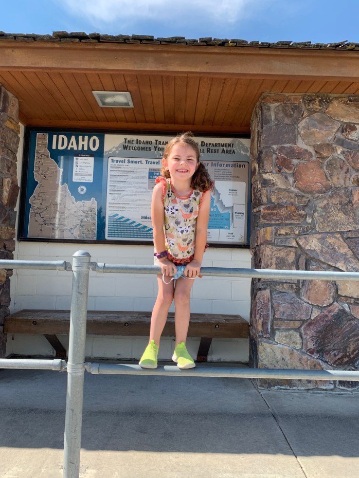 Kevin stopped briefly to look at a some regionally made fishing boats; he and Mont went inside while the rest of us waited in the car. We stopped for lunch in Idaho Falls at Scotty’s Drive-in restaurant. While we were sitting at a picnic table, a car pulled up behind us with three men inside. One got out and accidentally locked the other two in the car. He walked up to order for them inside. One of the other men opened the door and set off the alarm. We all jumped; the little ones covered their ears. Mont was screaming. The gentlemen in the car couldn’t get the alarm off. It went off for at least five minutes. Another customer eating outside went in to find the driver. He couldn’t get it off; pushing buttons on the key fob, he got it beeping faster. It sounded like it was going to explode. It was all quite comical. Everyone was so relieved when it shut off; we were laughing hysterically.