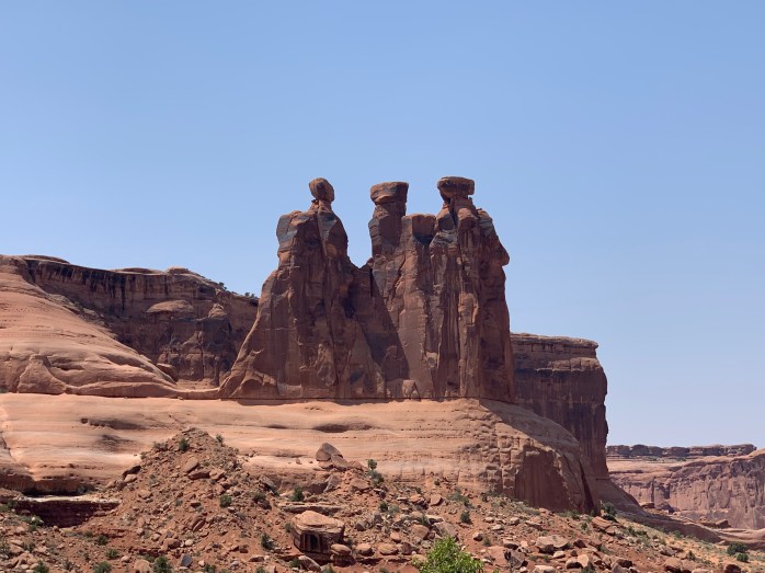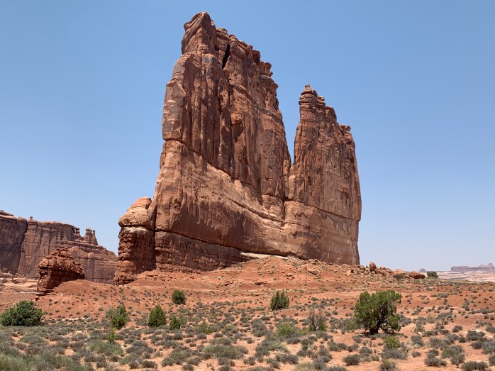 Stopped for lunch at another rest stop. We had picked up Subway sandwiches in Moab before we left and ate just before we got to Arches National Park at a covered table at the rest stop. It was just over 100 degrees out and no natural shade. Nice lunch break, though!