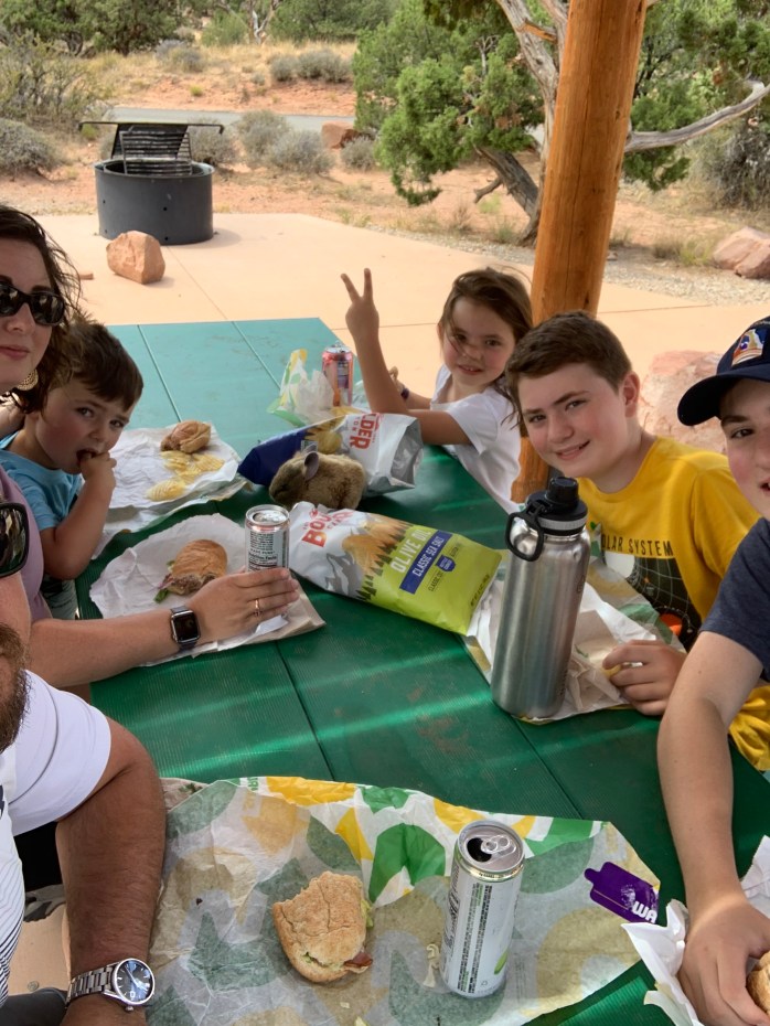 The next leg of our trip was the most adventurous thing that we have done so far. We took an unpaved road down to the bottom of a canyon to the Mineral Springs Boat Ramp. You could see down in the canyon the road winding all the way to the bottom. There were really only two places wide enough to pull over if you met another vehicle. Looking out WAY ahead up or down the mountain, we had to take turns with the couple of cars that were out there with us. I was a nervous wreck, honestly. Kevin told me to relax and enjoy it. Seriously, though, we were on a narrow dirt road with our whole family with a drop off into a canyon just a few feet away. Lillie was screaming, “I don’t want to die at 6!” We managed to make it down and back and lived to tell it. Thankfully.