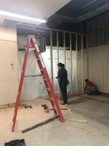May 23, 2019 Demolition began inside Wood’s. Walls came down; pegboard was removed.