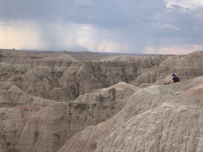 As we got closer to the Badlands, the topography started to change. Suddenly, there were rolling hills. We got to the Badlands visitor’s center 3 minutes before closing time. (I’ve been cutting it close with getting my Passport book stamped!) Y’all the Badlands are SO interesting. We got some good photos, but it’s so hard to capture the openness and vastness with a cell phone camera.