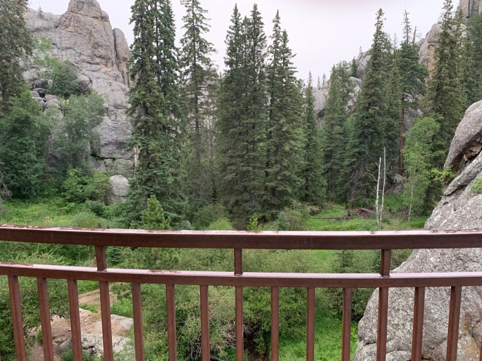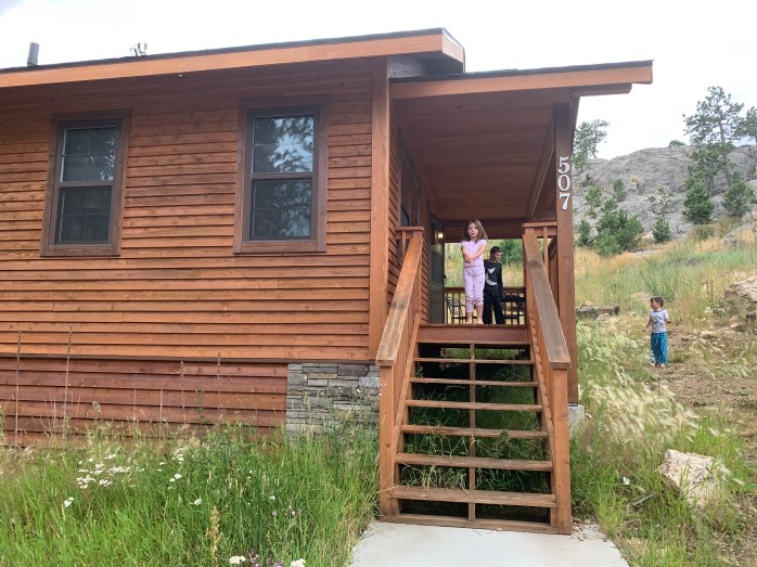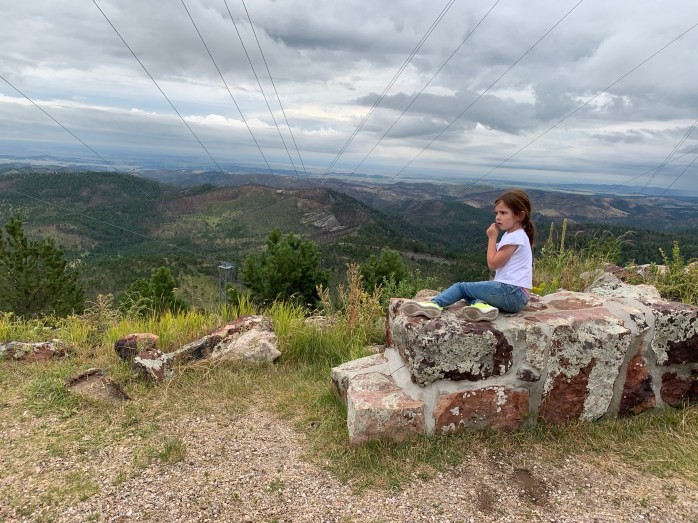 Hey, Y’all! We are still in South Dakota today. We ate dinner last night at the Sylvan Lake Lodge Restaurant; Edwin, Mont, and I had buffalo and Kevin had elk. (Lillie chose chicken fingers and Morgan went for the mini corn dogs.) Service was rushed; we were one of the last before quittin’ time.