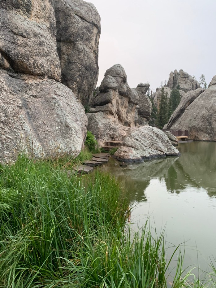 We woke up this morning in Custer State Park in South Dakota. Before we got in the car for a long day of driving, I wanted to go on a short hike. Kevin and I got up before the kids and took our coffee down to Sylvan Lake at sunrise. We set off on the one-mile loop around the lake.