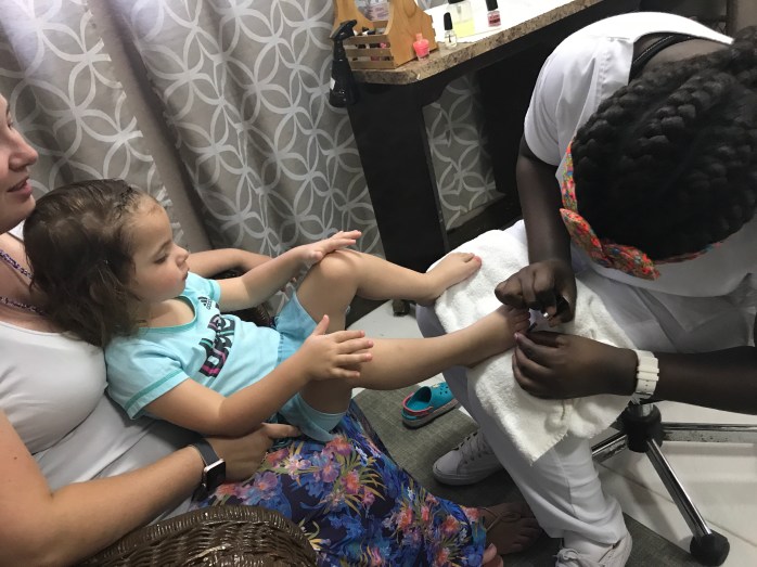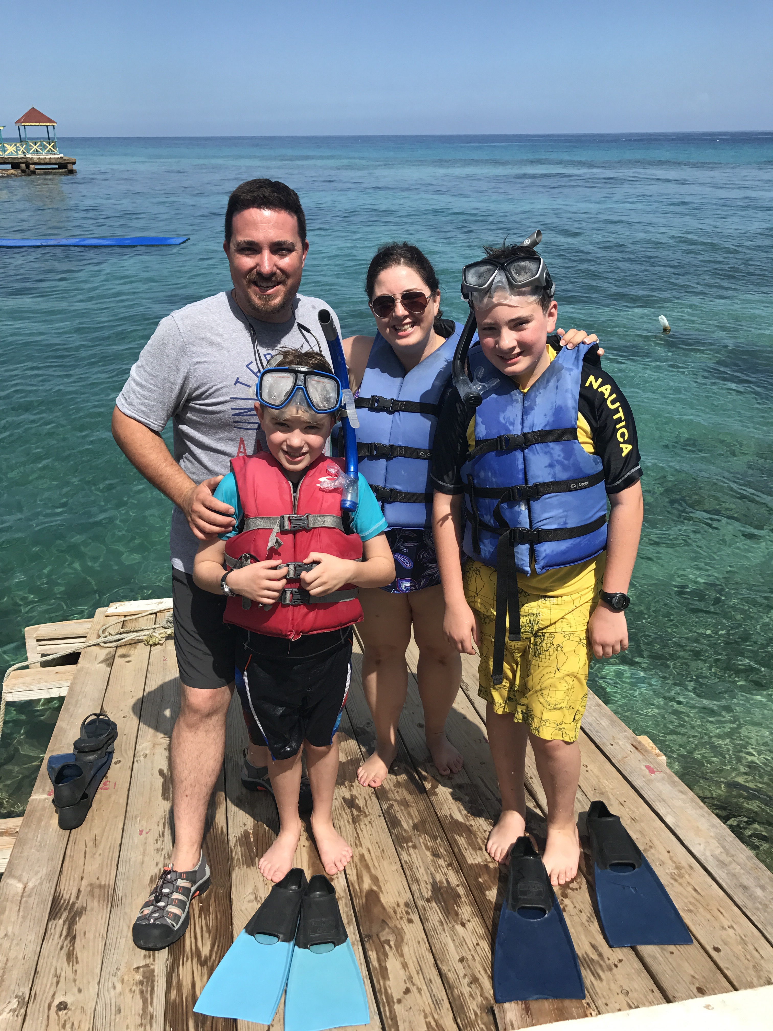 There are a lot of amazing travel experiences for families to share together, but this is truly the only RELAXING way to vacation with children. We went swimming with all of the kids in the pool. When the little ones were ready to get out, the nannies were ready to help with towels, dry clothes, drinks, and more sunscreen. We took our older boys to Dunn’s River Falls, while the younger two stayed at the resort and enjoyed the slower pace of the activities at the kids’ club. We were able to have one-on-one time with each child–which is hard to find when you have a large crew. I took my daughter, Lillian, to the small, on-site beauty shop where she had her hair braided and nails painted. My oldest son, Edwin, went fishing with my husband. My middle son, Montgomery, chose to go snorkeling with Kevin. My baby son, Morgan, didn’t want to leave his nannies. He was totally spoiled!
