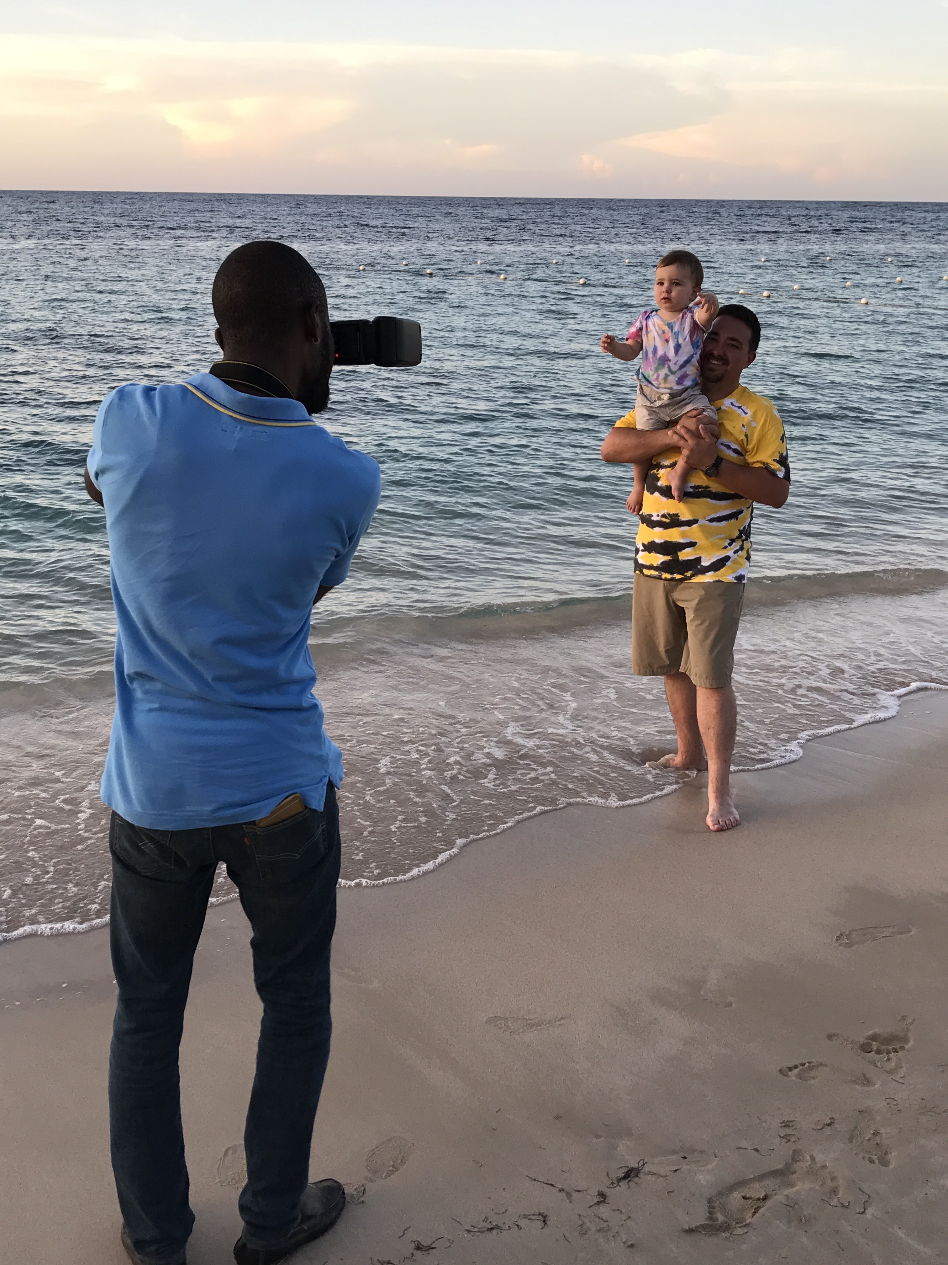 The beach that is owned by FDR is a small, kid-friendly wading area. There is a mat a little way out from the shore where guests can float and sun-bathe. The larger, more traditional beach at the resort next door is only a couple of steps away and accessible to registered FDR guests. This was also the site of the photo shoot for our family pictures.